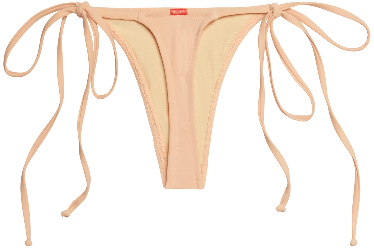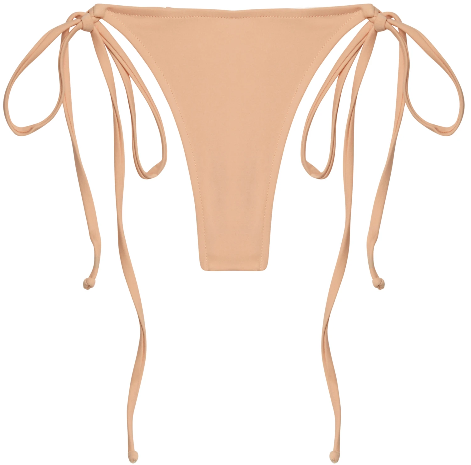 Stay golden in this hotter than hot bikini! The most risqué of our bikini bottoms, offers a sexy low-rise for those who like to show some skin. DETAILS: Made in the USA, fully lined – clean finish with no binding trim. G-string bottoms with side ties. Fully lined. CARE INSTRUCTIONS: Hand wash, line dry, no bleach, cool iron if necessary.