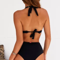 DETAILS: 100% handmade crochet swimwear. Fully lined. Fixed triangle bikini top with skinny tassel ties and strappy neckline detail. CARE INSTRUCTIONS: Hand wash cold, no chlorine, lay flat to dry, cool iron only.