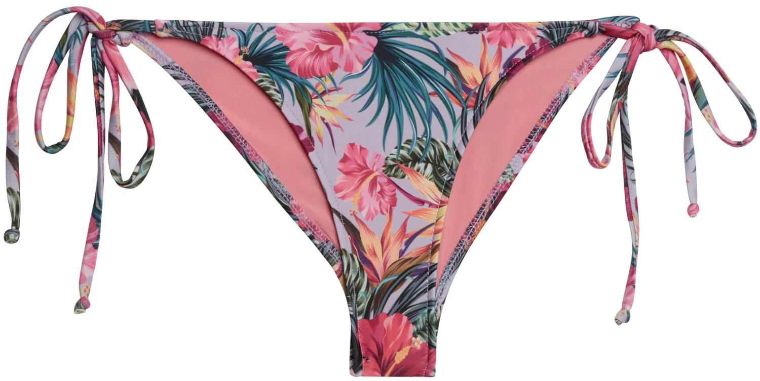 Lilac Tropical Print Classic Scrunch Bun® bikini bottoms. DETAILS: Made in the USA, fully lined. Classic scrunch bottoms with side ties. CARE INSTRUCTIONS: Hand wash, line dry, no bleach, cool iron if necessary.