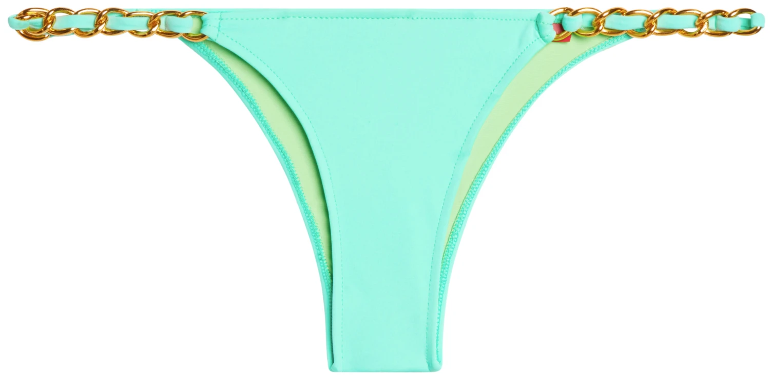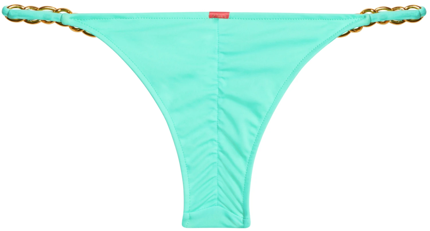 Fall in love with this resort-ready designer bikini, featuring our micro scrunch bottoms with gorgeous gold chain accents. All made right here in sunny SoCal! DETAILS: Made in the USA. Banded micro scrunch bottoms with wide gold chain accents. Fully lined. CARE INSTRUCTIONS: Hand wash, line dry, no bleach, cool iron if necessary.