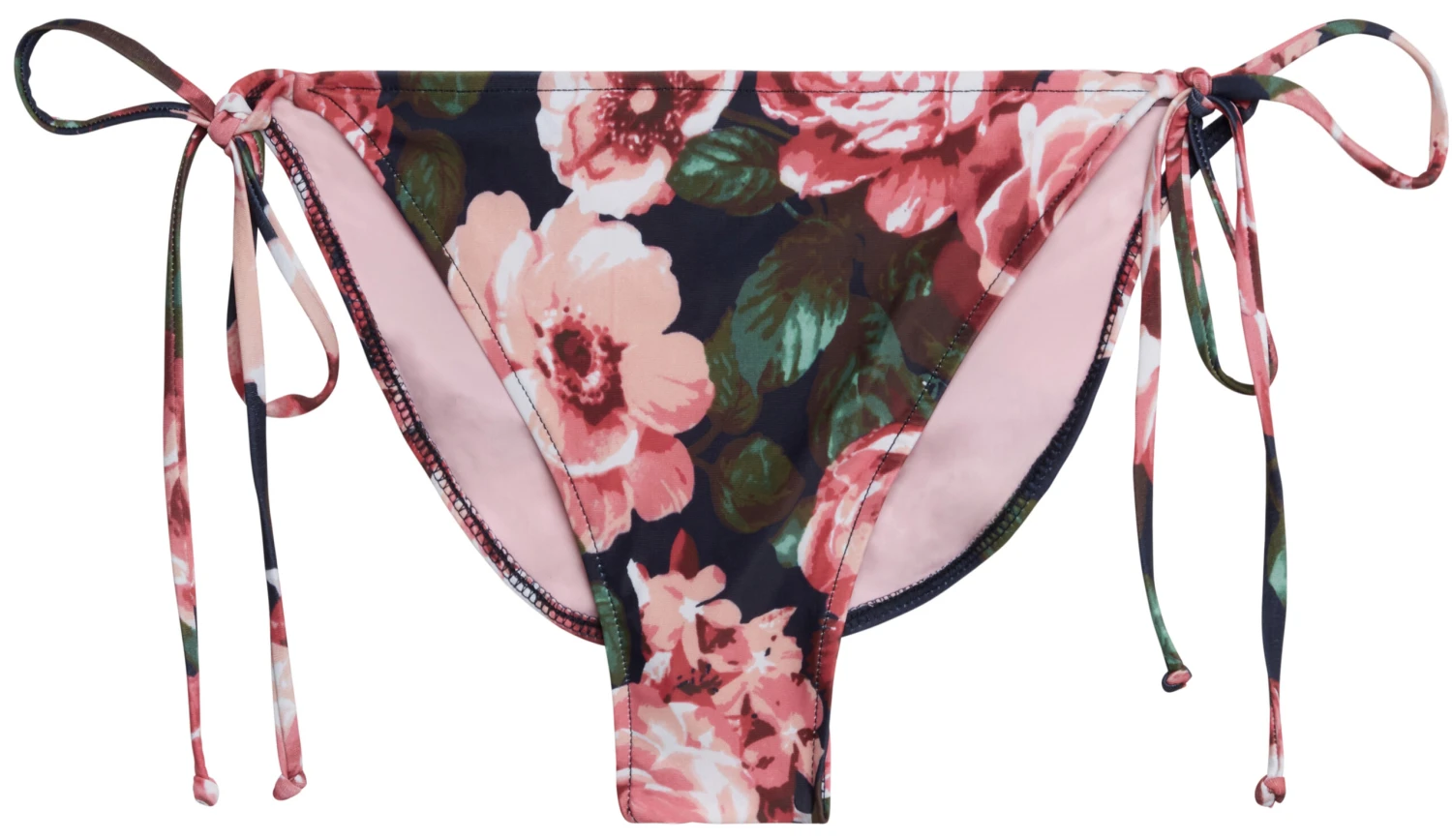 DETAILS: Made in the USA, fully lined. Rose Garden print, clean finish with no binding trim. Adjustable triangle string bikini top with skinny neck ties and bust pad pockets. CARE INSTRUCTIONS: Hand wash, line dry, no bleach, cool iron if necessary.