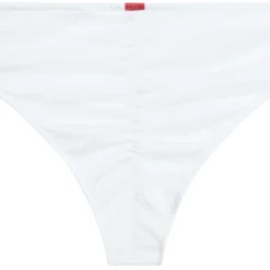 DETAILS: Made in the USA, fully lined. Solid white, clean finish with no binding trim. Adjustable triangle string bikini top with skinny neck ties and bust pad pockets. CARE INSTRUCTIONS: Hand wash, line dry, no bleach, cool iron if necessary.